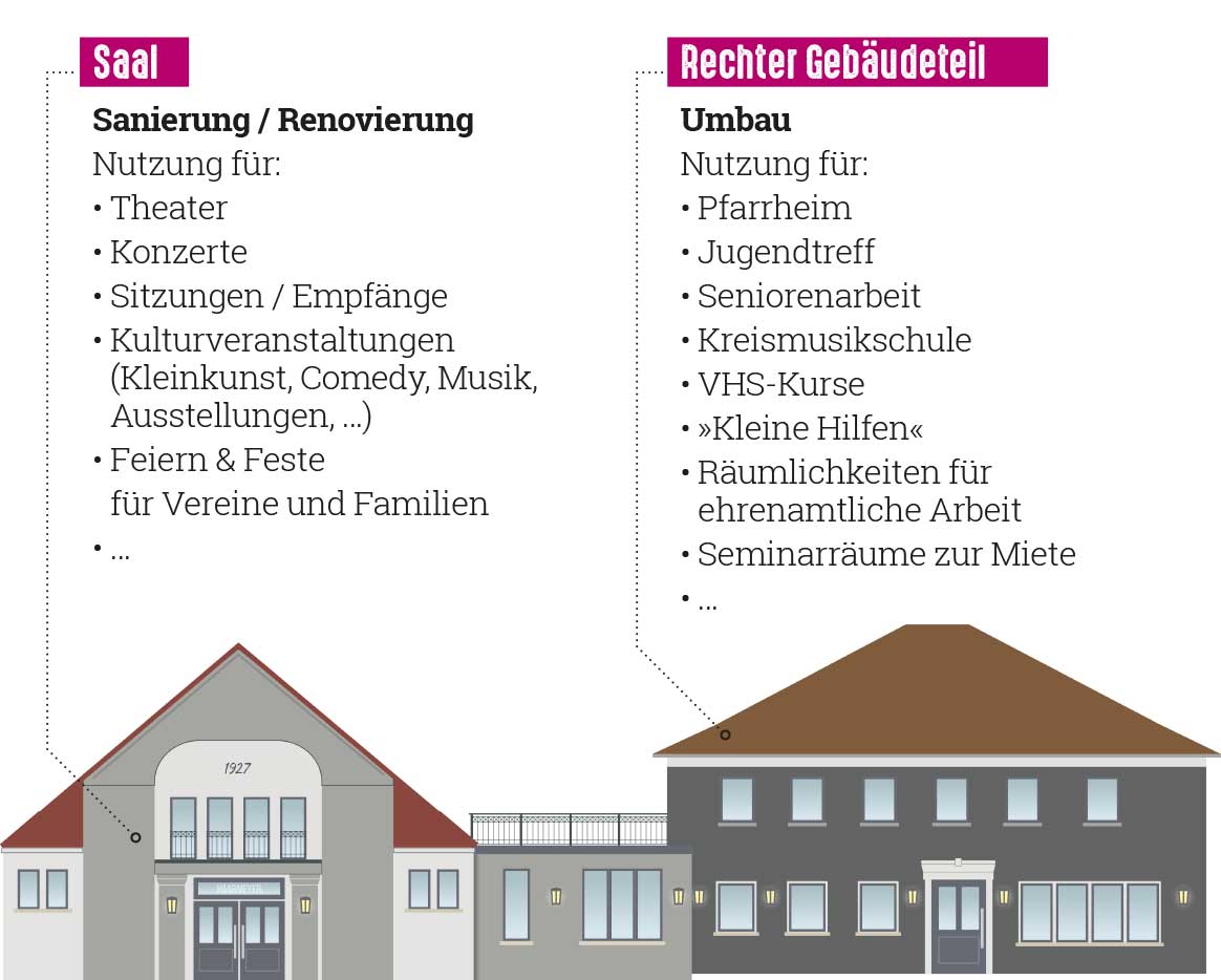 Der Saal soll in seinem Erscheinungsbild unverändert bleiben, muss aber natürlich saniert werden. Das soll in einem späteren Bauabschnitt passieren.