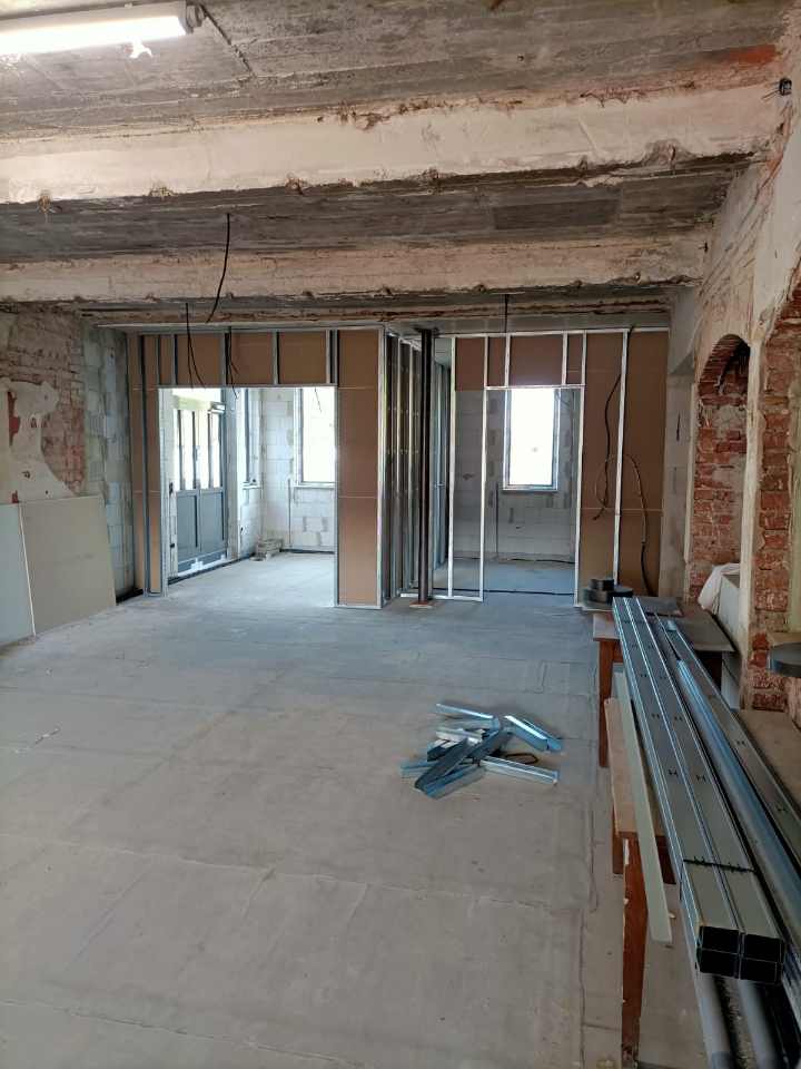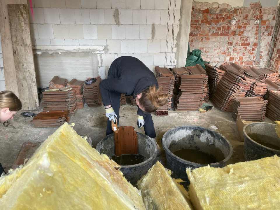 Ulf Dieckmann als Geschäftsführer der gGmbH ist täglich auf der Baustelle und hat alle Entwicklungen im Blick. Bei einer Altbausanierung ergibt sich immer wieder Unvorhergesehenes, auf das man spontan reagieren muss. »Die Arbeit zeigt den Weg«, sagt man. Das trifft beim alten Haarmeyer auf jeden Fall zu.