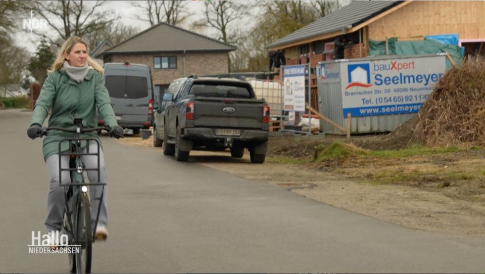 Bei Nieselregen und klirrender Kälte beantwortete sie fahrradfahrenderweise Fragen über ihren Heimatort – Kameramann und Redakteurin fuhren vor ihr im offenen Kofferraum des NDR Transporters und nahmen das Interview auf. Das erzeugte bei mehreren Passanten schon regen Gesprächsstoff.